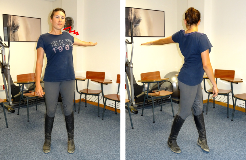 Hay algunos ejercicios con caballos que requieren la máxima movilidad de nuestros brazos. Por ejemplo, cuando pie a tierra y trabajando a la cuerda queremos enviar el caballo en una u otra dirección, o cuando llevamos el caballo del ronzal y necesitamos en un momento dado estirar de la cuerda para que avance, o ejercer presión con la cuerda para que pare. También en otras circunstancias, domando un potro o cuando la situación lo requiere, necesitamos tener la máxima amplitud de giro de nuestro tronco y brazos.