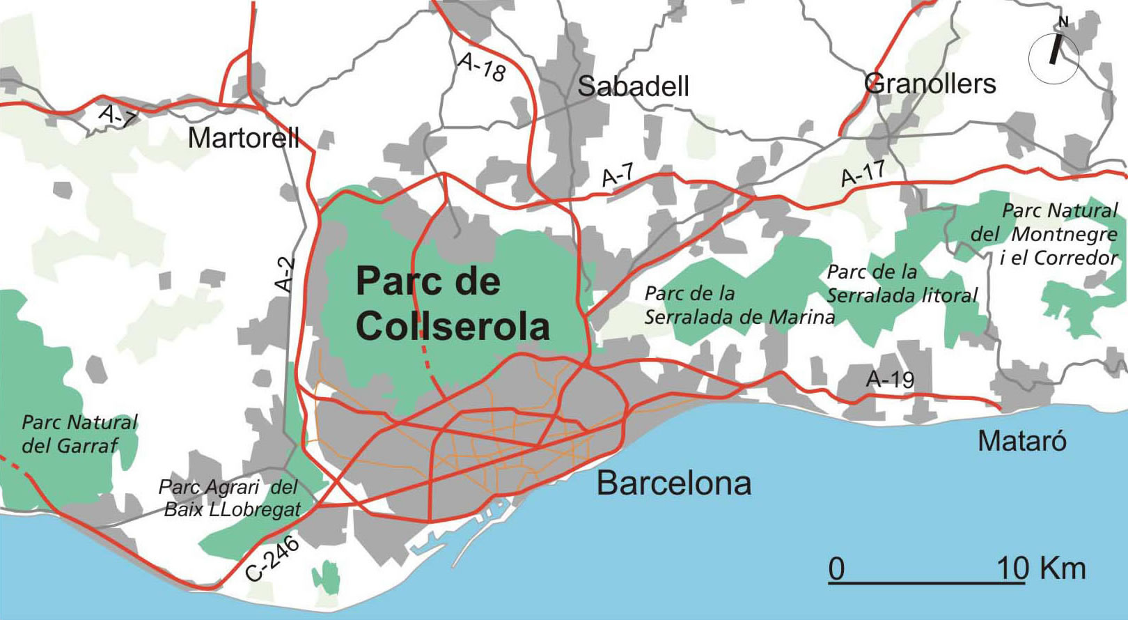 La sierra de Collserola forma parte de la Cordillera Litoral catalana. Está comprendida entre los ríos Besós y Llobregat.