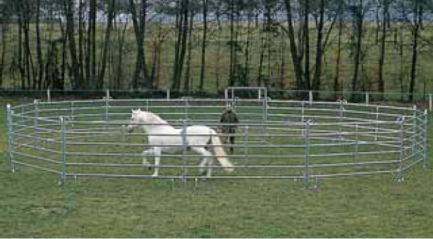 La pista circular estará formada por dieciséis paneles metálicos de 3,05x1,60m y un panel con puerta de idénticas dimensiones. En esta pista se realizarán parte de las actividades, y servirá también para dejar a los caballos en libertad cuando no exista carga de trabajo.