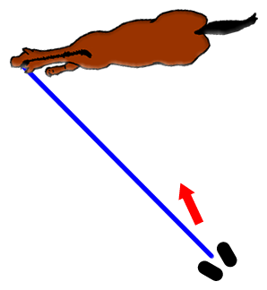 - Cuando el caballo nota tensión en la cuerda desplaza la grupa hacia el exterior y quizás avanza de lado. En este caso el entrenador ha de reconsiderar su posición, debe situarse por detrás del caballo y reducir tensión en la cuerda. Normalmente esta situación se produce cuando nos encontramos con caballos que presentan cierta rigidez en el lado interior y casi siempre se produce trabajando a mano derecha.