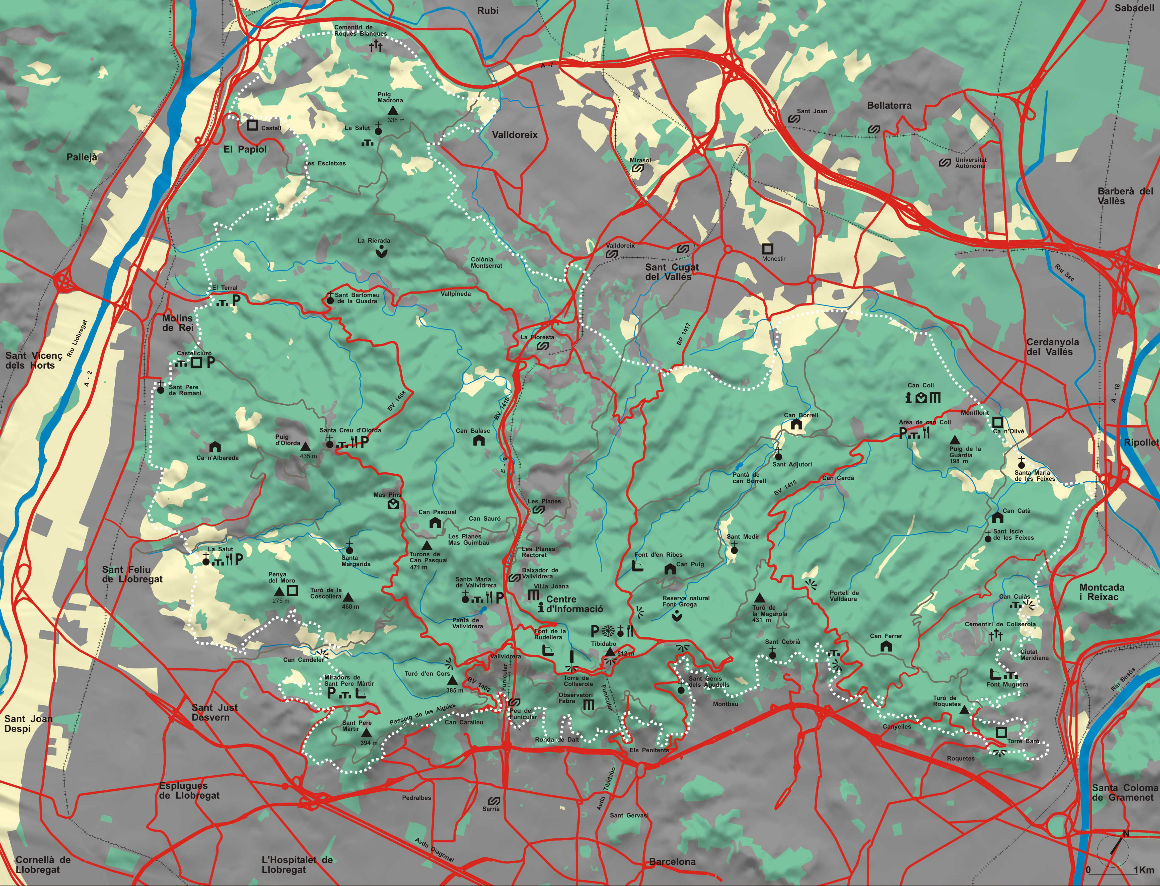 La sierra de Collserola forma parte de la Cordillera Litoral catalana. Está comprendida entre los ríos Besós y Llobregat.