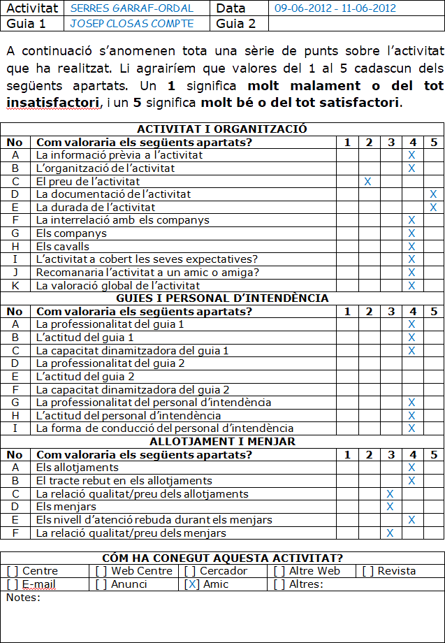 - Qüestionari anònim de satisfacció (3).